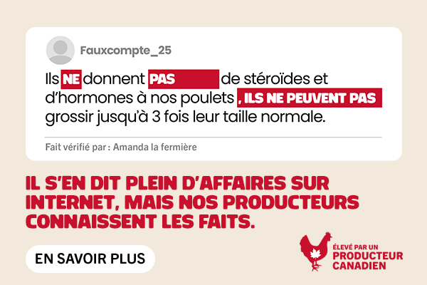 Au cœur de la campagne, la plateforme créative « Les faits sur l’élevage en liberté » démêle le vrai du faux sur l’élevage du poulet au Canada et informe les consommateurs directement à la source.